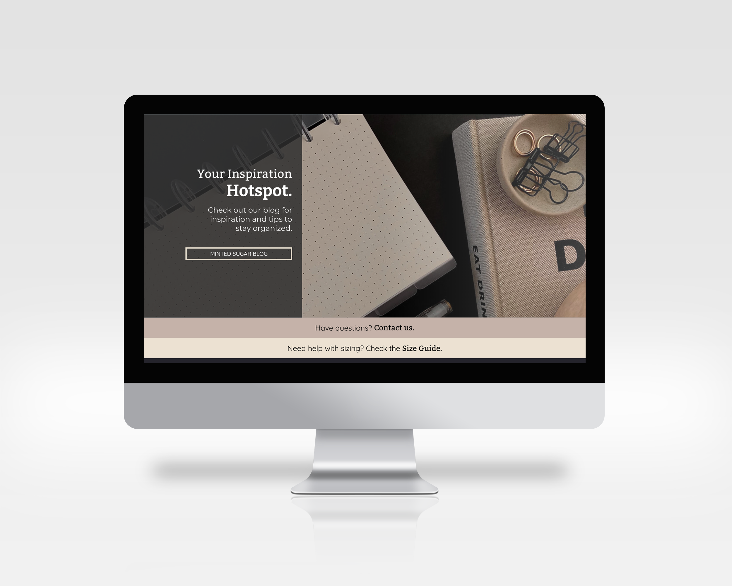 The redesigned website for Minted Sugar highlights the company’s unique identity and luxury products for stationery enthusiasts. The website is fully accessible, user-friendly, and provides detailed information about Minted Sugar’s unique product line.