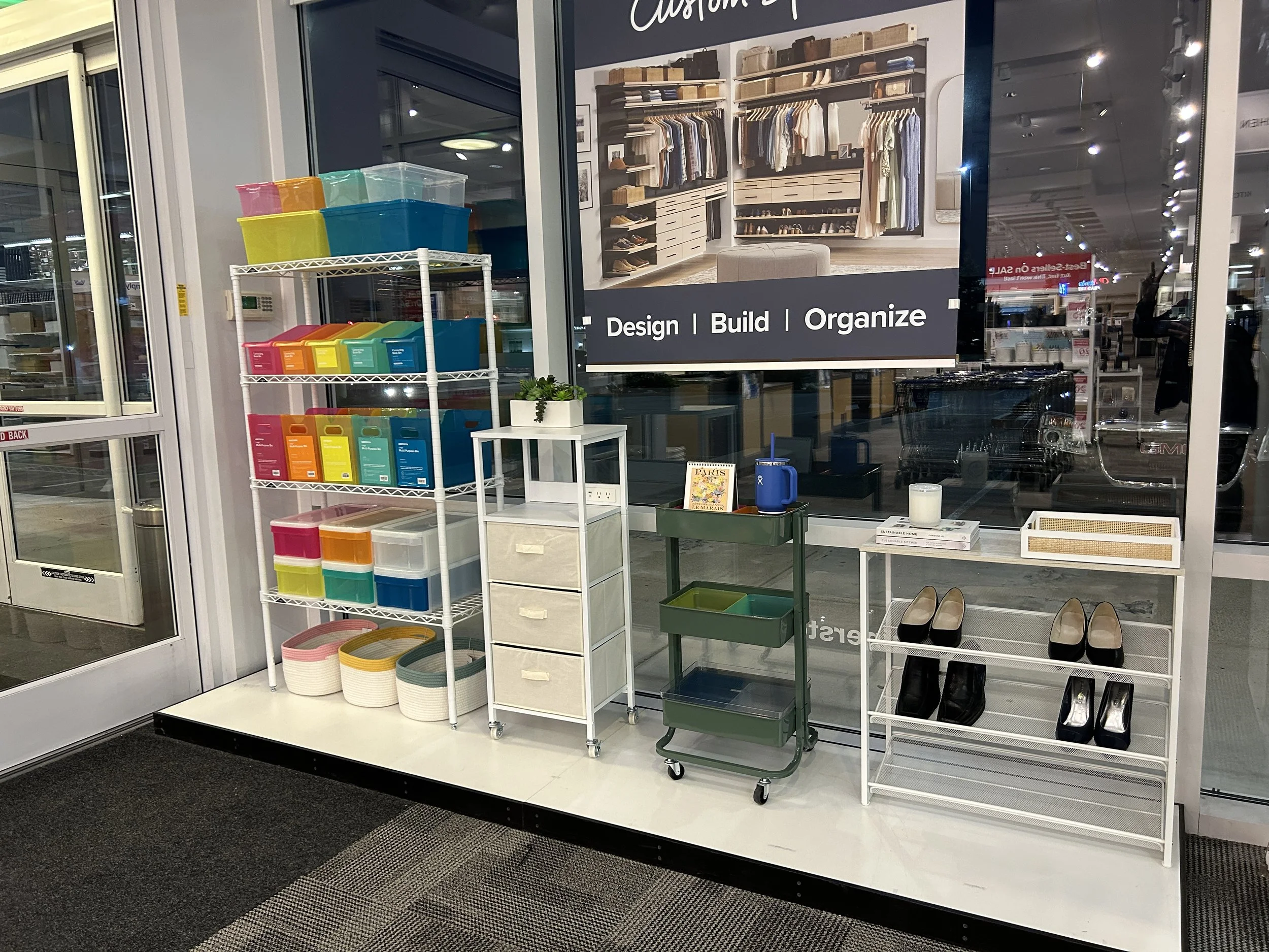 The purpose of this display is to engage shoppers with bright and saturated ‘spring’ colors and to encourage space renovations with modern, exciting new furniture. Traditionally, The Container Store has marketed a ‘spring into style’ campaign during the spring season, so I knew that a light and beautiful spring display was very necessary for the front of the store.